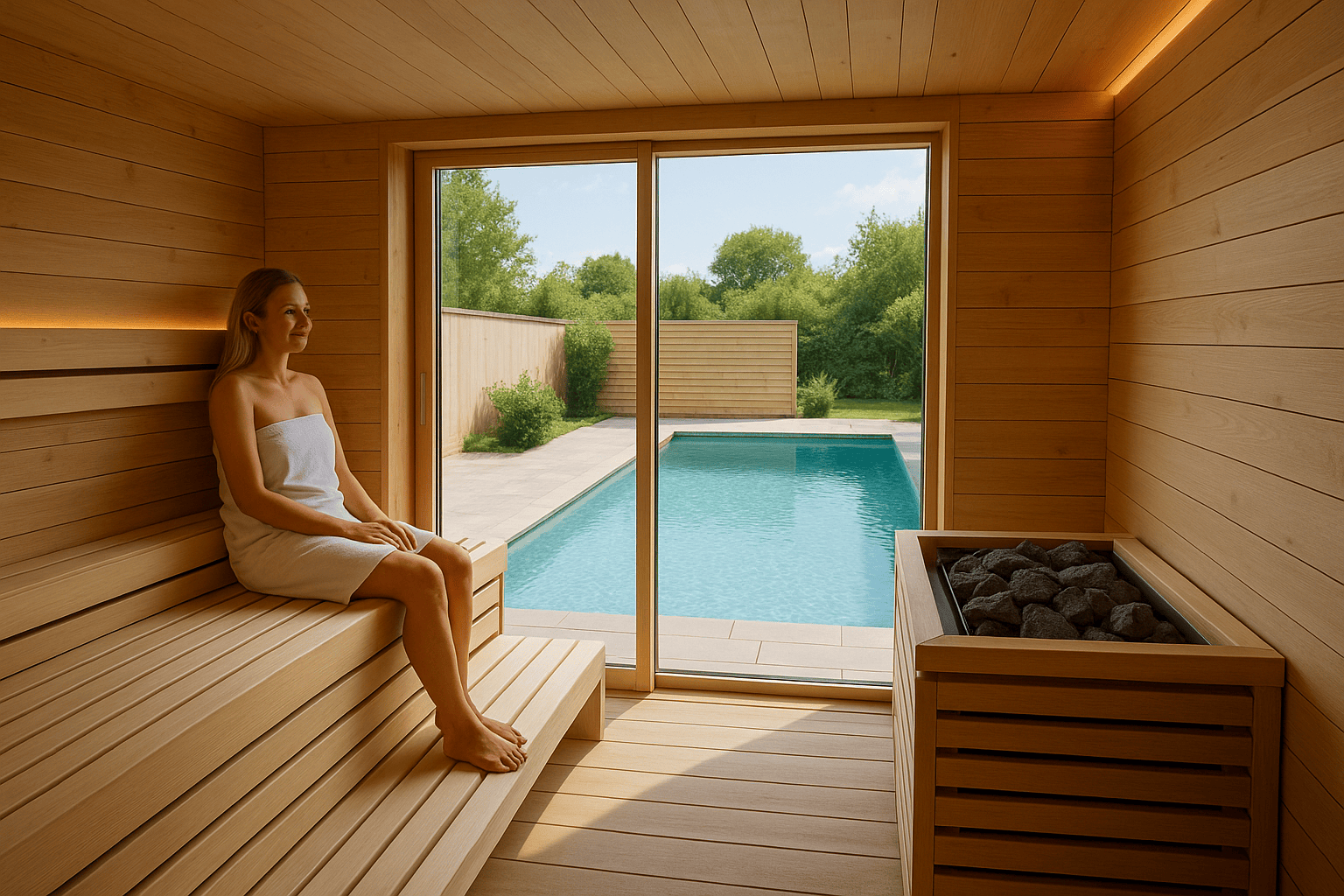 Wir arbeiten ausschließlich mit hochwertigen Materialien wie nordischem Fichtenholz, edlem Zedernholz oder thermobehandeltem Holz, die sowohl für Langlebigkeit als auch für ein angenehmes Raumklima sorgen. Zusätzlich integrieren wir moderne Saunatechnik, die eine einfache Bedienung und individuelle Temperatureinstellungen ermöglicht.